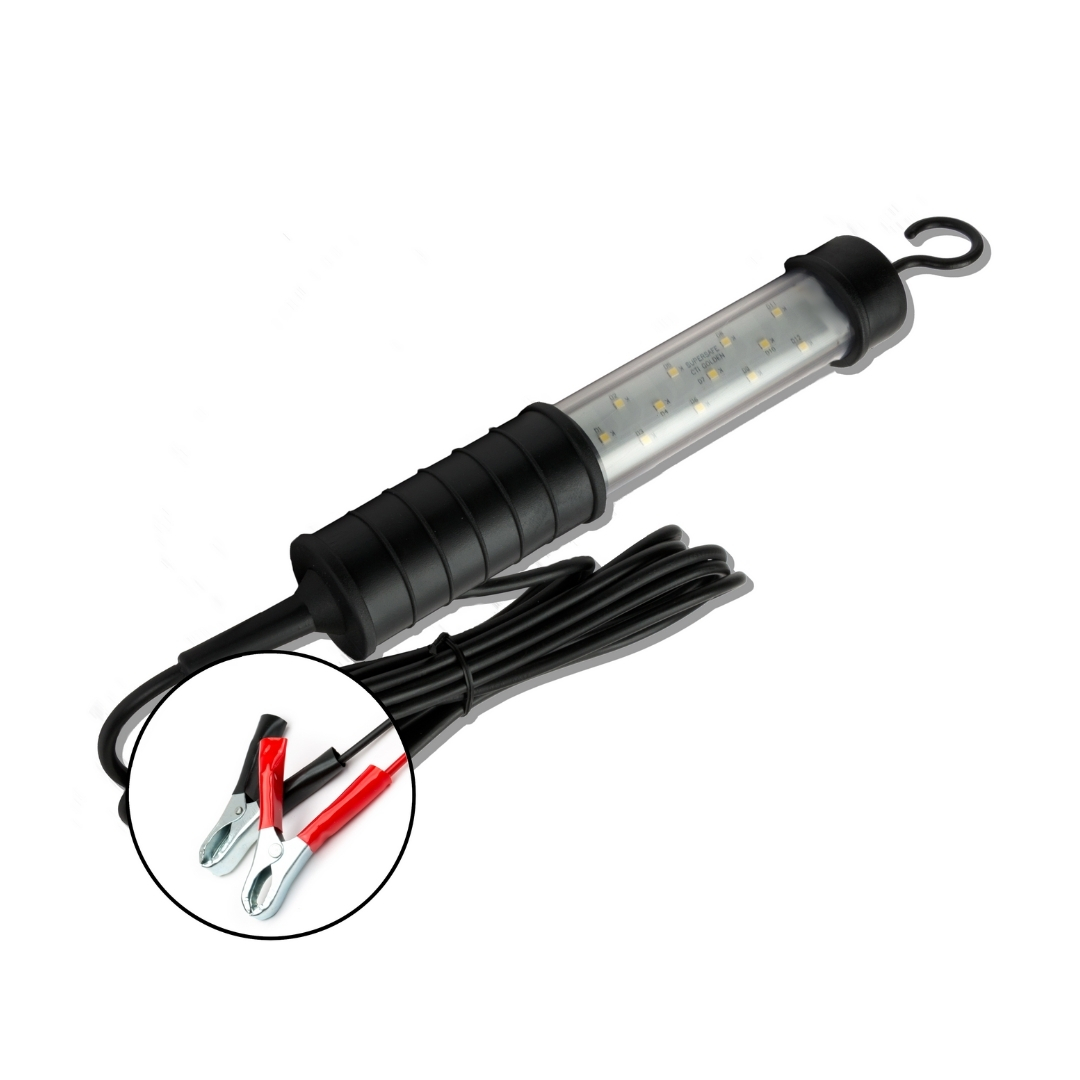 Cabo de força D.C. com garra para ligação nos polos da bateria do veículo.